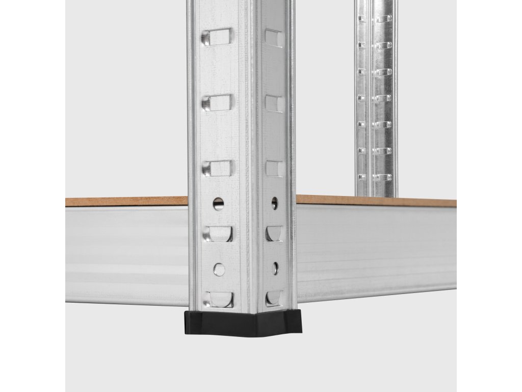 Kovový skladový regál Rebel môžete bezpečne umiestniť kdekoľvek v garáži alebo dielni bez obáv o stabilitu. Produkt je vybavený protišmykovými nálepkami na nožičkách, vďaka ktorým sa regál nebude šmýkať ani presúvať, dokonca ani na hladkých podlahách. Aby ste zabezpečili maximálnu bezpečnosť, nezabudnite priskrutkovať regál k stene.