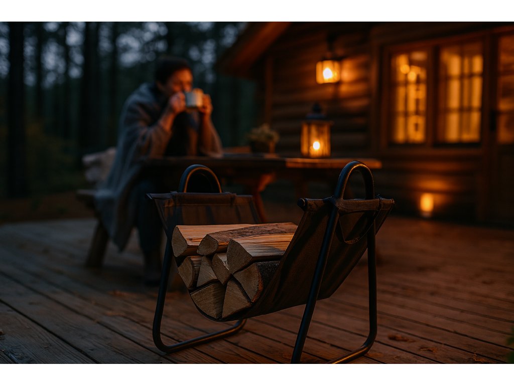 KOVOVÝ STOJAN NA DREVO S PRENOSNOU TAŠKOU 40X45X50CM *5851