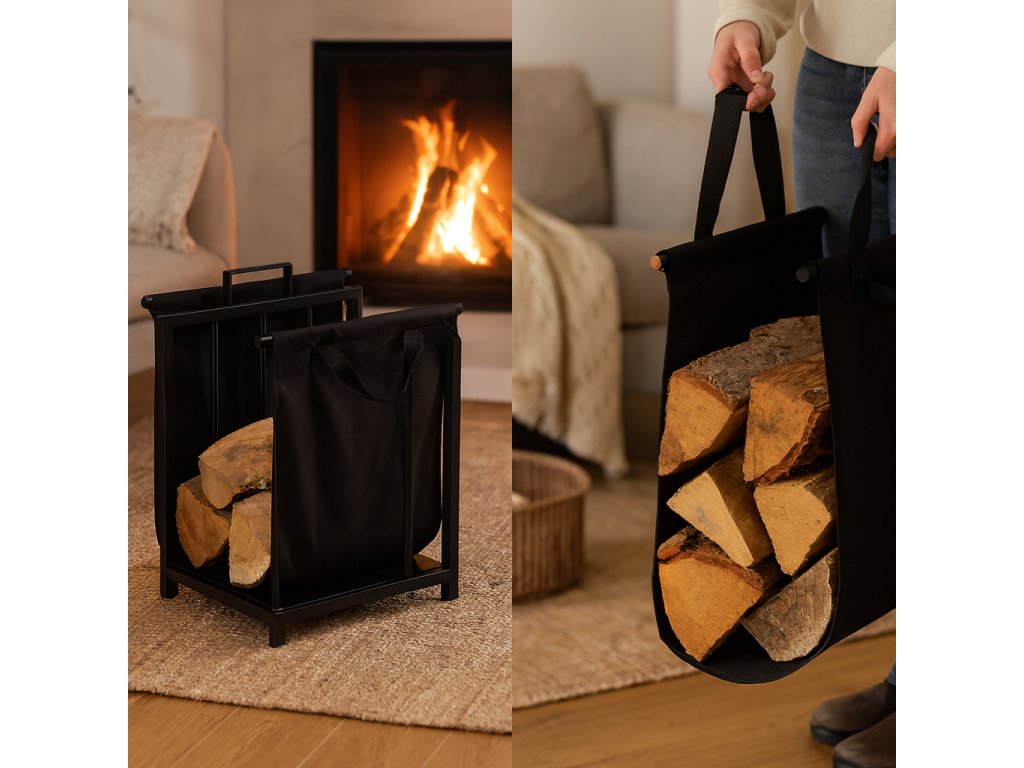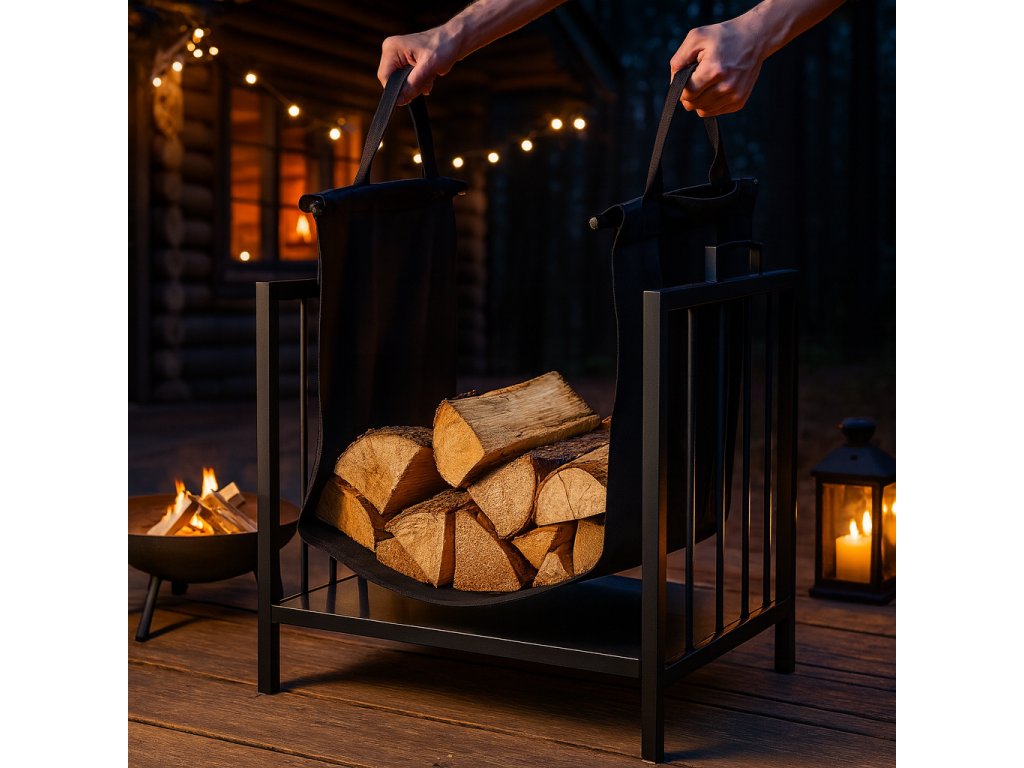 Kovový stojan na palivové drevo s prenosnou taškou je pohodlné a praktické riešenie na uskladnenie dreva v blízkosti krbu alebo pece. Dodatočná taška uľahčuje transport dreva a kovový stojan zaručuje stabilitu a poriadok.