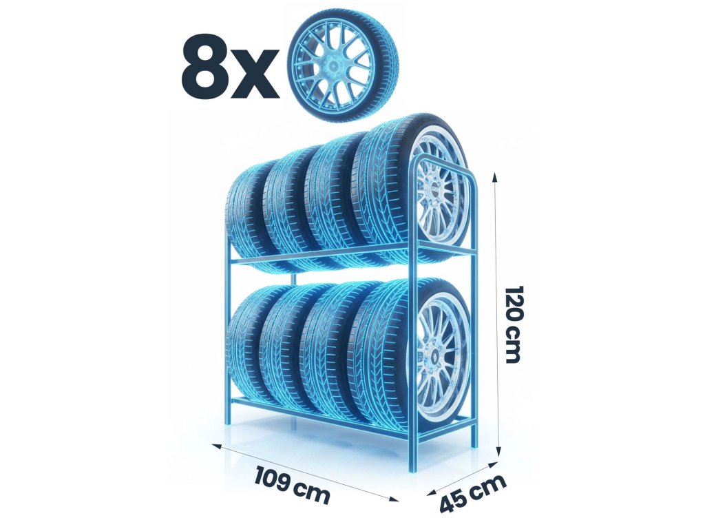Regál na pneumatiky 8 ks – ideálny do garáže, pivnice a dielne
