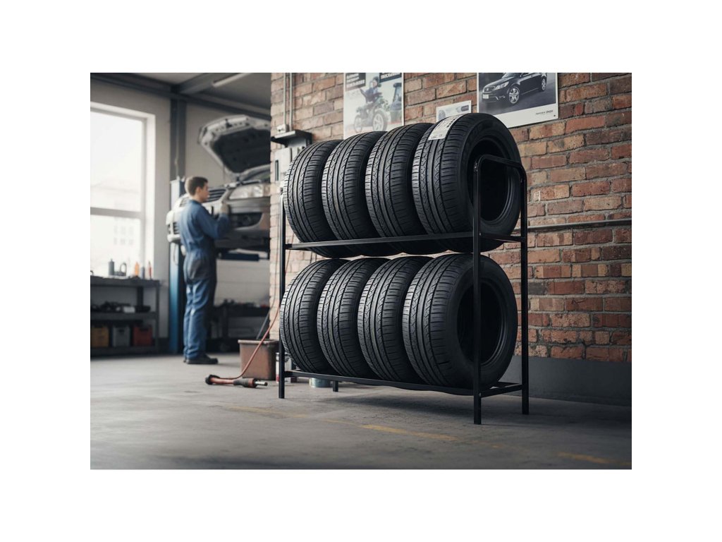Bezpečné a trvalé skladovanie pneumatík – kovová konštrukcia zabraňuje deformáciám a chráni dezén.