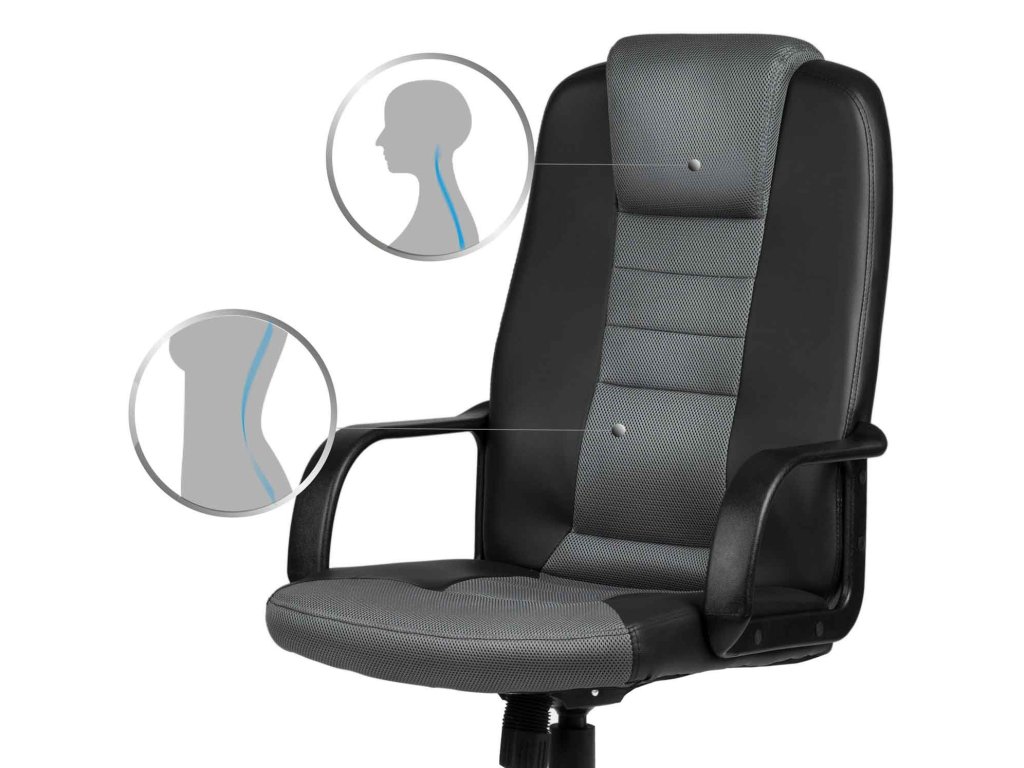 Kožené kancelárske kreslo s mikrosieťkou 518B čierno-sivé