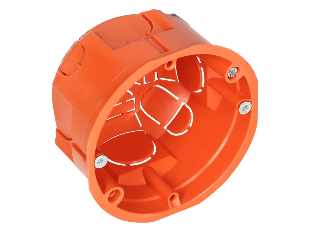 Výrobok je vyrobený z plastu vo farbe oranžovej. Je okrúhly, s priemerom 68 mm. Vnútorná hĺbka 60 mm poskytuje viac miesta pre káble, konektory a montážne komponenty.