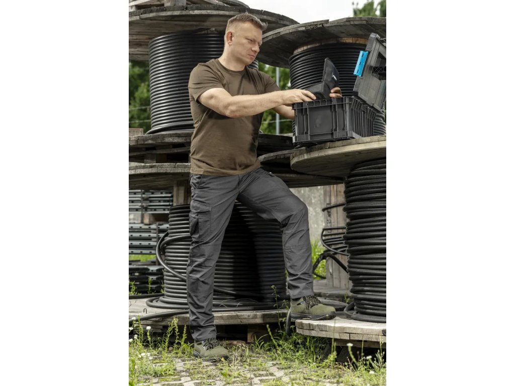 Vyrobené z odolnej rip-stop textílie, ktorá vykazuje zvýšenú odolnosť voči oderu a poškodeniu. Textília rip-stop má charakteristickú, silnú väzbu so špeciálnymi vystužujúcimi vláknami, vďaka čomu sa materiál stáva odolným voči oderu, roztrhnutiu a inému poškodeniu. Nohavice sa osvedčia aj v náročných podmienkach alebo pri intenzívnej práci. Zloženie materiálu obsahuje 65% polyesteru a 35% bavlny, čo zabezpečuje primeranú priedušnosť a pohodlie.