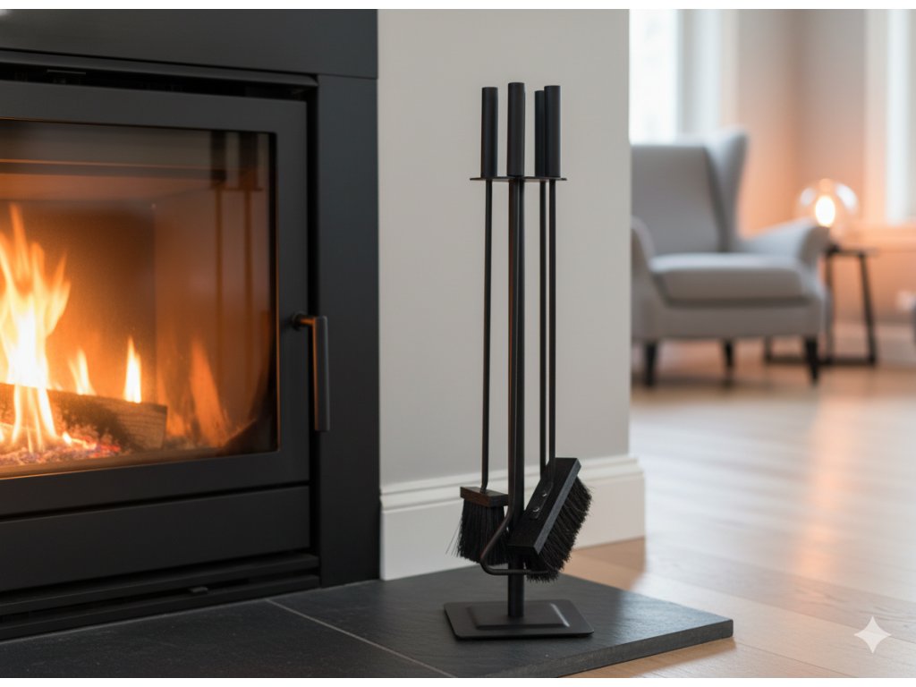 Krbová súprava, ktorá obsahuje potrebné príslušenstvo na udržiavanie poriadku pri krbe. Pevná konštrukcia zaisťuje pohodlie pri používaní a oceľové púzdro s práškovým nástrekom zaručuje trvanlivosť.