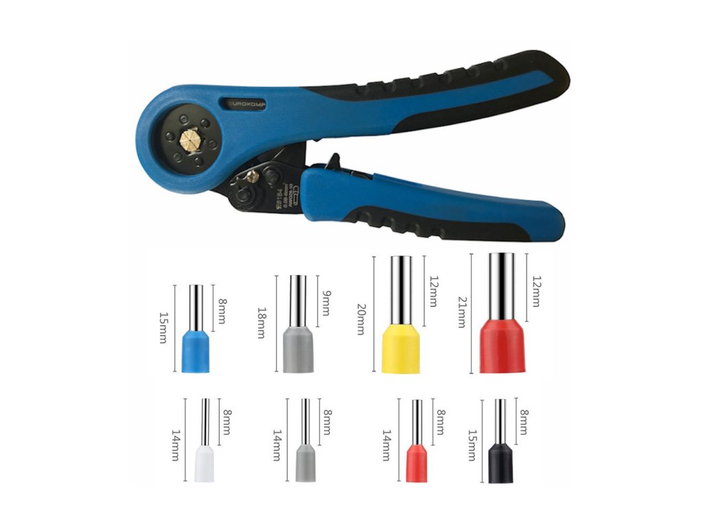 - Pracovný rozsah: Dvojité návleky: 0,5-2,5 mm2; Jednoduché návleky: 0,06-6 mm2.