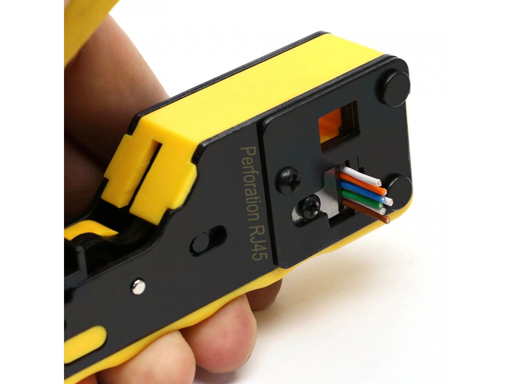 Lisuje 6-pinové a 8-pinové konektory RJ45, ako aj konektory RJ45 RJ11 RJ12.