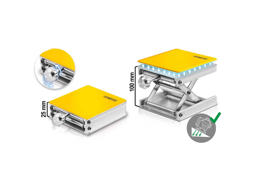 - Kľukový mechanizmus umožňuje presné prispôsobenie výšky na milimetrové odstupy.