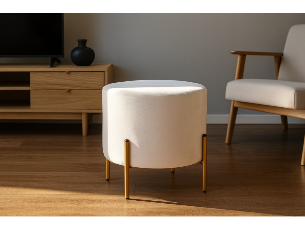 ? VELÚROVÁ PUFA NA ZLATÝCH NOŽIACH 35 x 40 CM BÉŽOVÁ ?