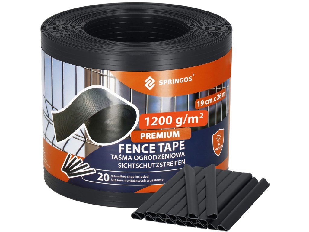Krycia páska na plot grafitová 19CMX26M 1200g/m2 20 KLIPOV FN0005