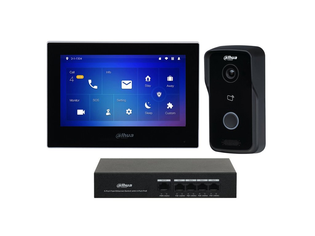 Sada DHI-KTP03 od značky Dahua je moderný systém videovrátnikov v technológii IP. Súčasťou sady je 7-palcový dotykový monitor vnútorný, vonkajšia stanica 1-tlačidlová s čítačkou príveskov a PoE switch na napájanie systému. Videovrátnik umožňuje vzdialené ovládanie otvárania prostredníctvom mobilnej aplikácie DMSS. Videovrátnik sa vyznačuje možnosťou integrácie so systémom alarmu a ovládania 1 vstupu. Sada KTP03 je jednoduchá na inštaláciu - vďaka napájaniu zo switcha PoE zariadenie vyžaduje privedenie iba jedného druhu káblovania ku každému z prvkov (kábel UTP).