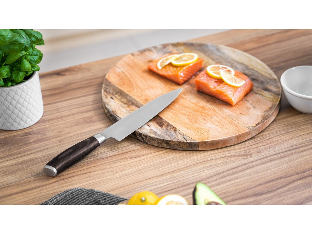 Radi prekvapujete svoju rodinu a priateľov chutnými jedlami? Dobrý kuchársky nôž je v kuchyni absolútne nevyhnutný. Charakteristickou črtou tohto typu kuchárskeho noža je jeho dlhá, široká a dokonale tvarovaná čepeľ, vďaka ktorej je veľmi univerzálny. Ľahko s ním nakrájate mäso, ryby, ale aj zeleninu alebo bylinky.