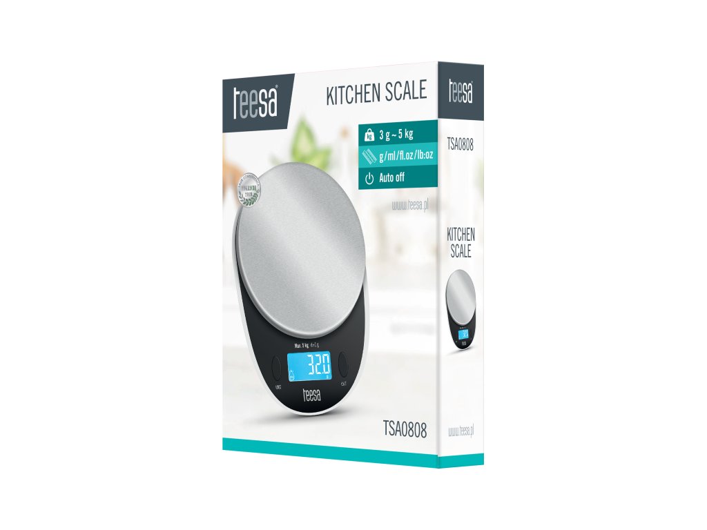 Kuchynská váha je zariadenie, bez ktorého si len ťažko dokážeme predstaviť prípravu domácich jedál. TSA0808 s maximálnou hmotnosťou 5 kg meria s presnosťou na 1 g, takže si môžete byť istí, že odmeriate presné množstvo ingrediencií, ktoré potrebujete. Veľkou výhodou kuchynskej váhy Teesa je aj funkcia tara, ktorá sa hodí napríklad vtedy, keď chcete odvážiť produkty v miske.