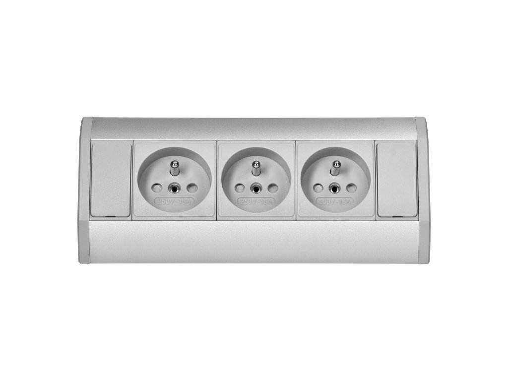 Kuchynská zásuvka trojitá strieborná 230V