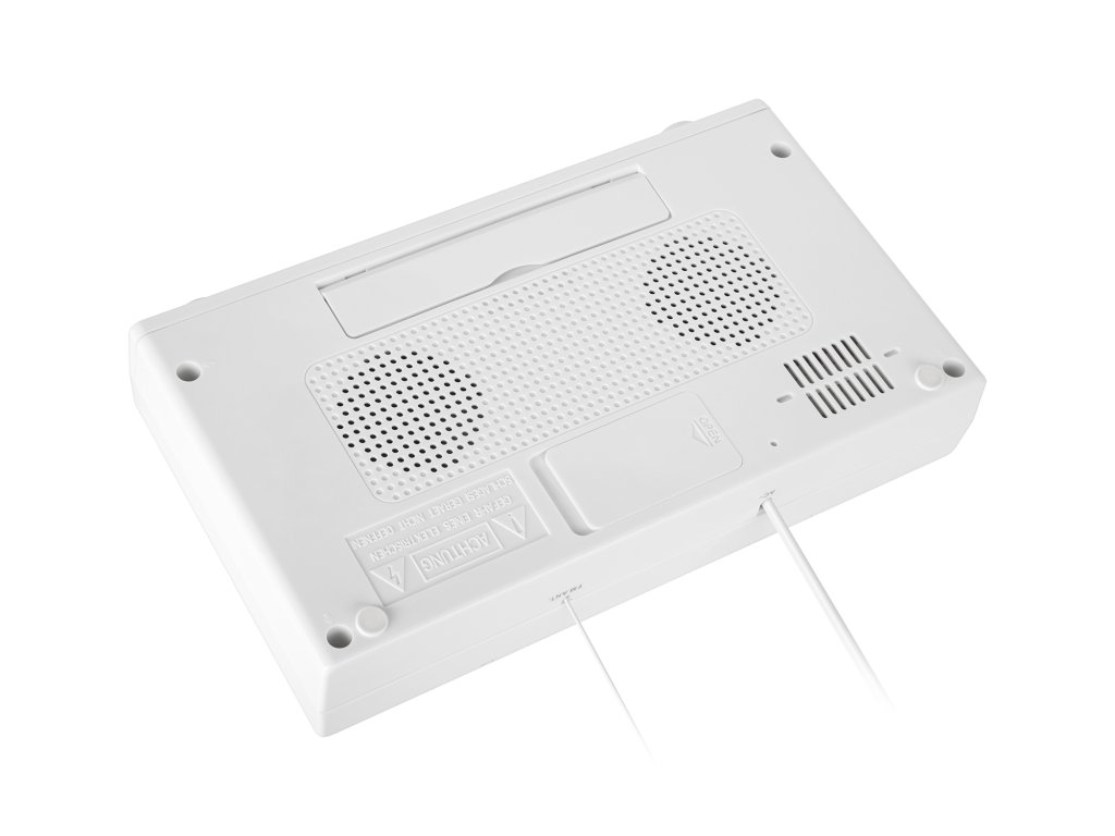 Napájanie z batérie: 2x batérie AA (nie sú súčasťou balenia; batérie sa používajú len na udržanie pamäte hodín a budíka počas výpadku prúdu)