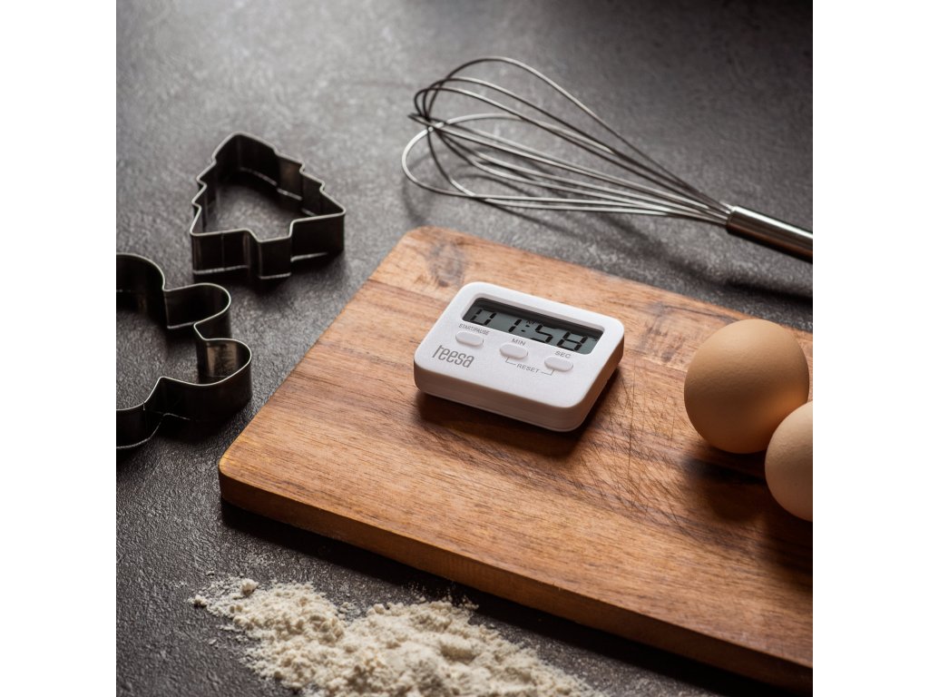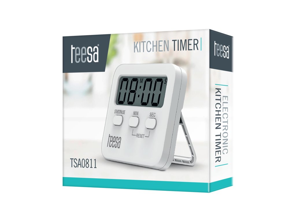 Elektronický kuchynský časovač Teesa TSA0811 je užitočným zariadením do každej kuchyne. Bude vám nápomocná najmä pri varení vajec, cestovín, pečení mäsa alebo pečení koláčov. Prevádzkový rozsah zariadenia je 99 min. 59 s. Po nastavení správneho času vás tento kompaktný digitálny časovač upozorní, keď je čas vypnúť sporák alebo rúru.