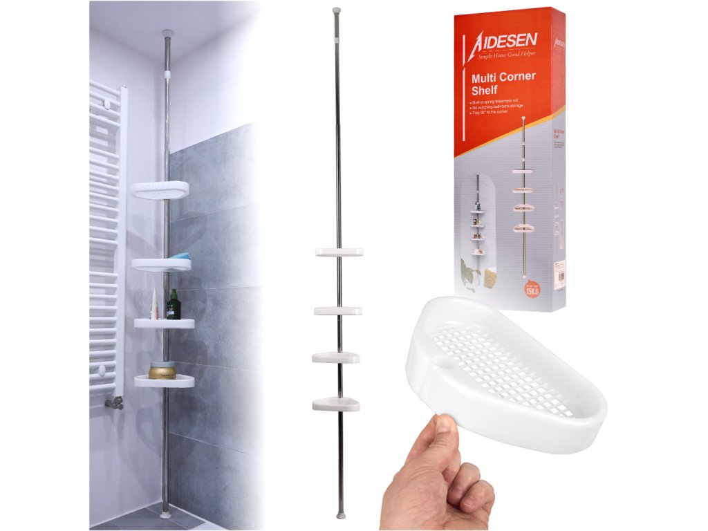 KÚPEĽŇOVÁ ROHOVÁ POLICA DO SPRCHY TELESKOPICKÁ VÝŠKOVO NASTAVITEĽNÁ 320 CM