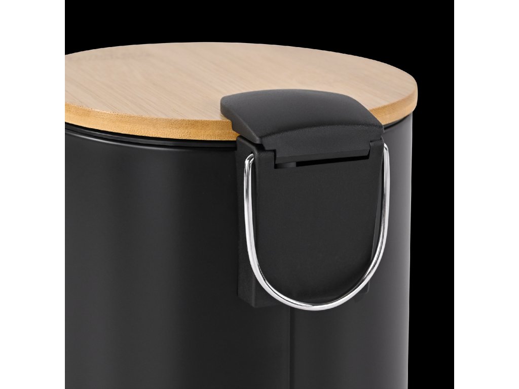 Vo vnútri koša sa nachádza vyberateľný vedro s uchom, čo uľahčuje vyprázdňovanie a čistenie. Stabilná základňa z plastu chráni povrchy pred poškriabaním, a kombinácia práškovaného železa, plastu a bambusu zabezpečuje trvácnosť a estetický vzhľad na roky.