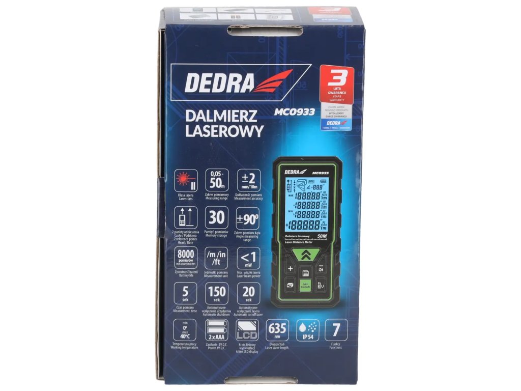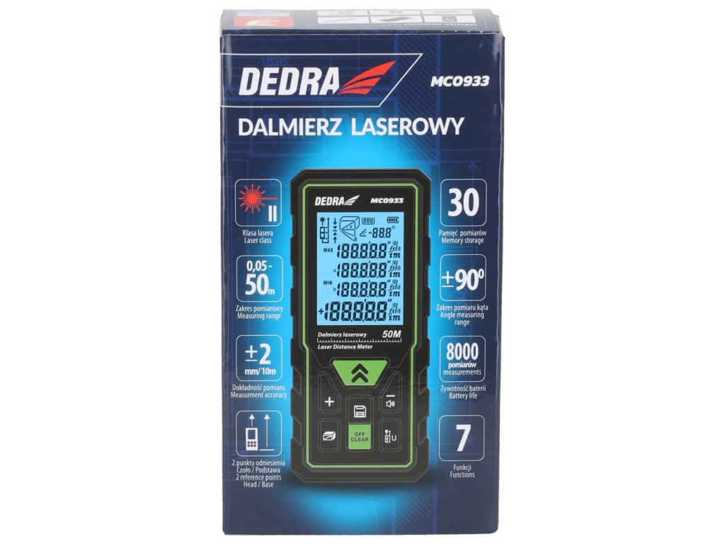 - Dlhý dosah laserového lúča 50 m