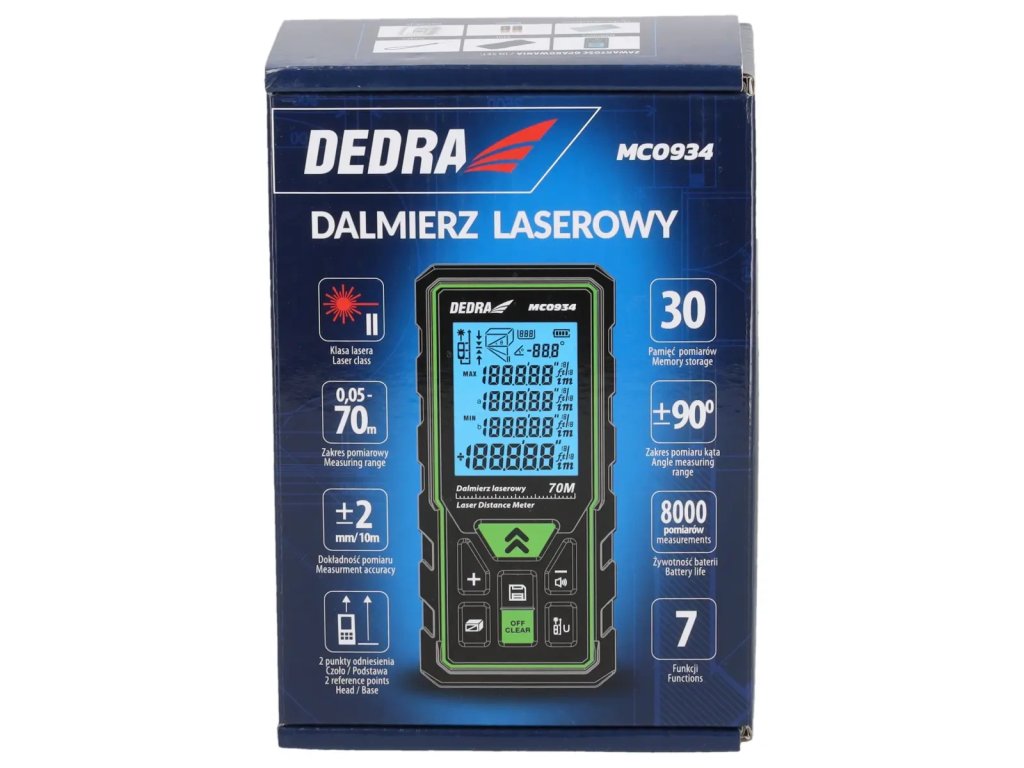 - Dlhý dosah laserového lúča 70 m