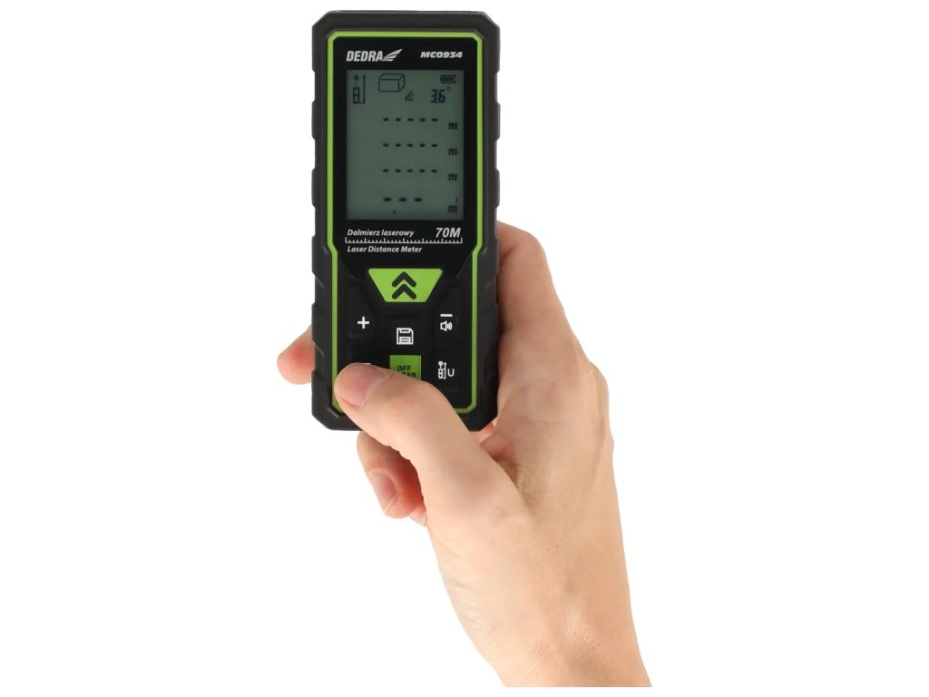 - 7 funkcií: spojité meranie, meranie plochy, meranie objemu, trigonometrické funkcie, sčítanie/odčítanie, mi nimum/maximum, meranie uhla.