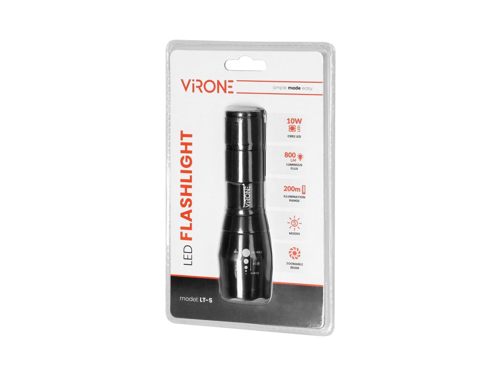 - Odolná konštrukcia: Konštrukcia z kvalitného hliníka robí LED baterku 10W 800lm so zoomom AAA hliník odolnou voči náročným podmienkam. Táto robustná baterka je ideálna pre použitie v interiéri aj v exteriéri, odolná voči pádom a opotrebovaniu.