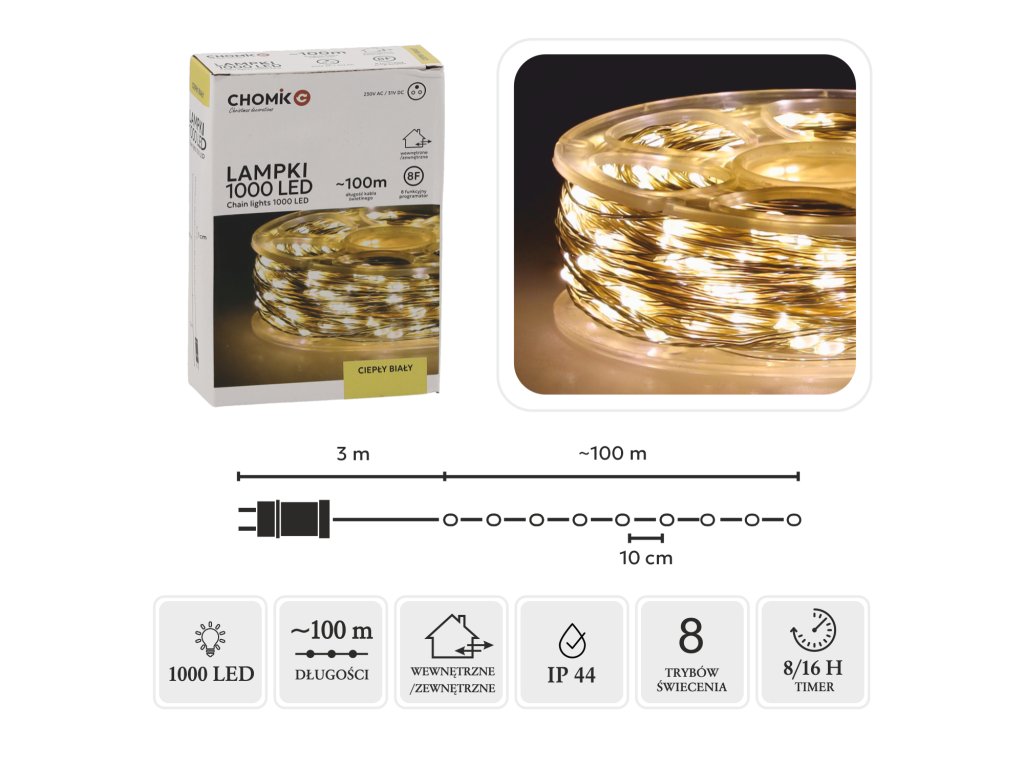 > počet diód: 1000L> farba diód: teplá biela