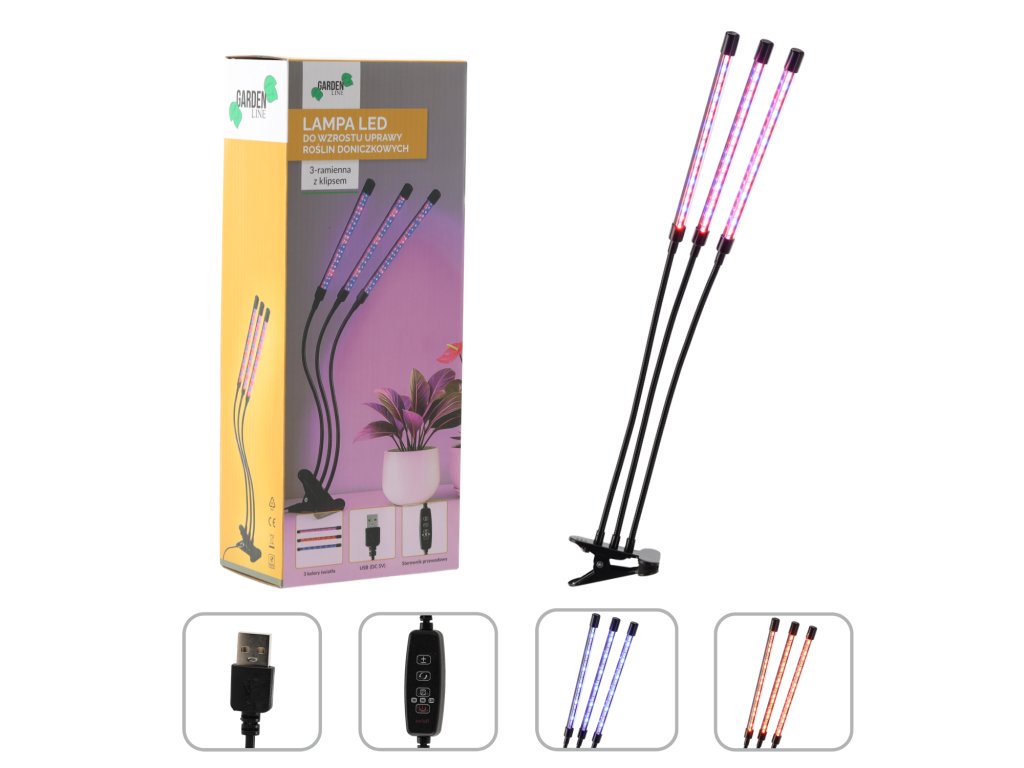 LED LÁMPA NA PESTOVANIE IZBOVÝCH RASTLÍN 3-RAMENNÁ *3814