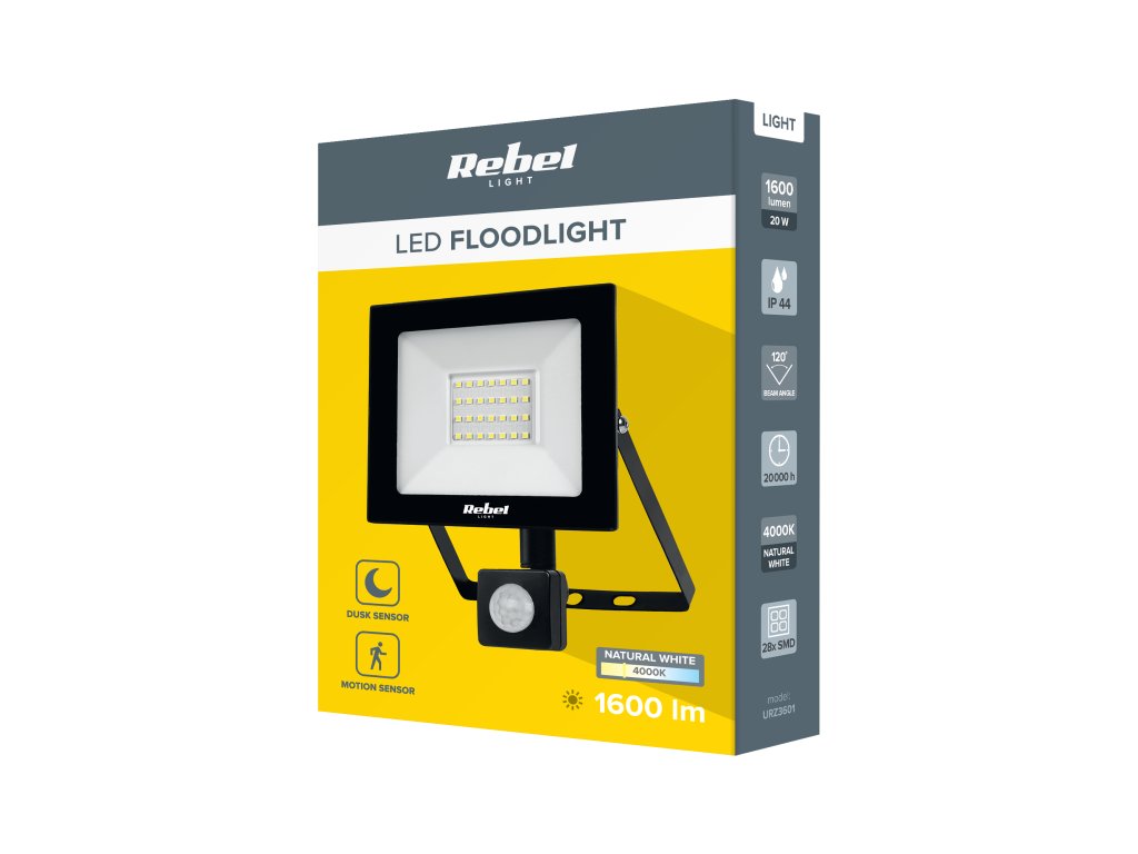 LED reflektor 20W z sensorem zmierzchu i ruchu 4000K (28x2835 SMD), 230V
