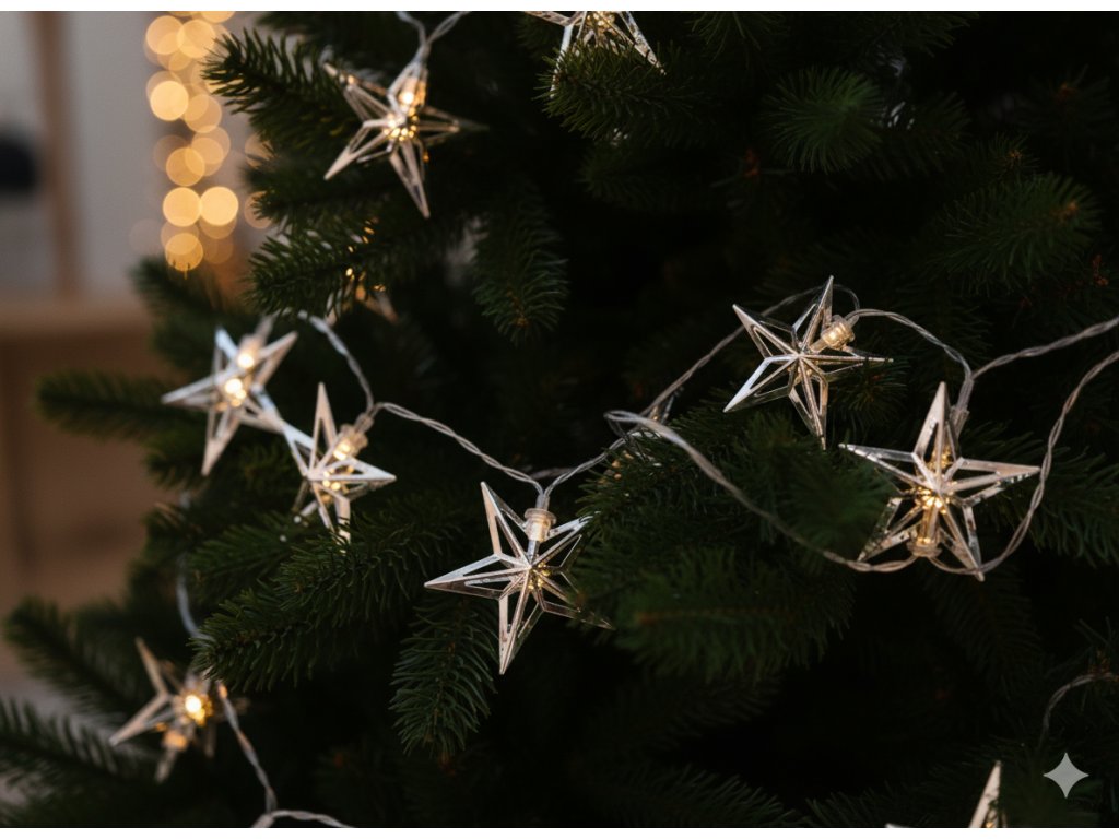 LED REŤAZ STRIEBORNÉ HVIEZDIČKY 10 L TEPLÁ BIELA *1044