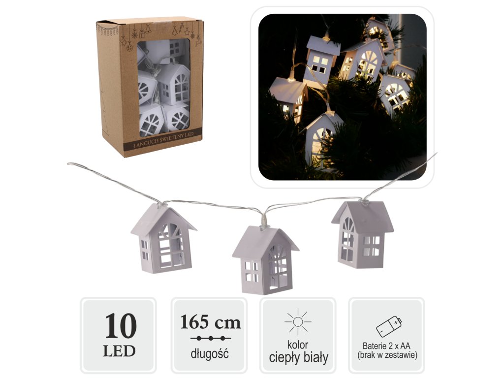 LED SVETELNÁ REŤAZ METALOVÉ DOMČEKY 10 L NA BATÉRIE *1402