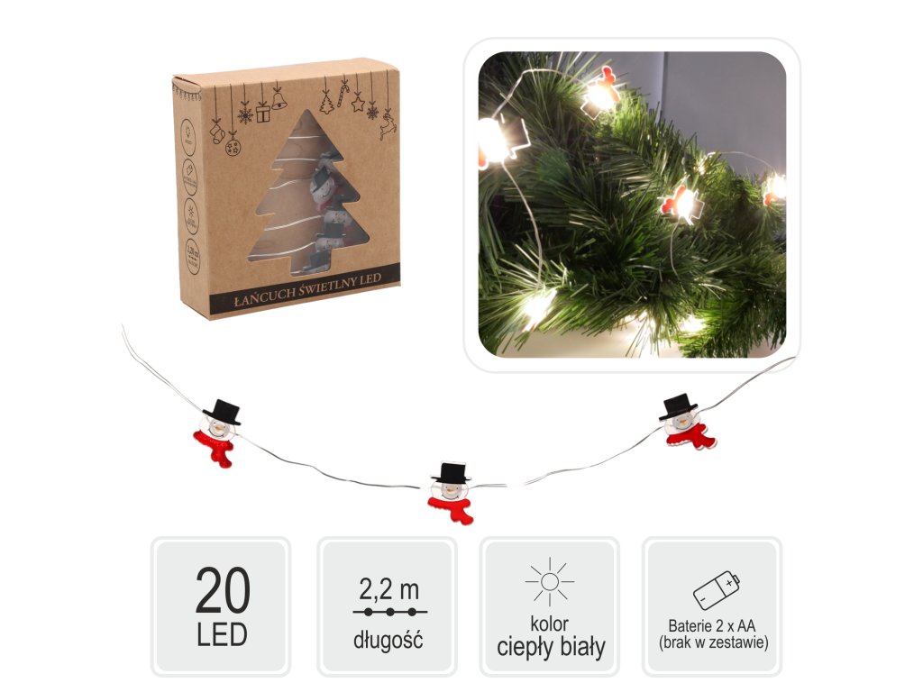 - počet LED: 20,- farba LED: teplá biela