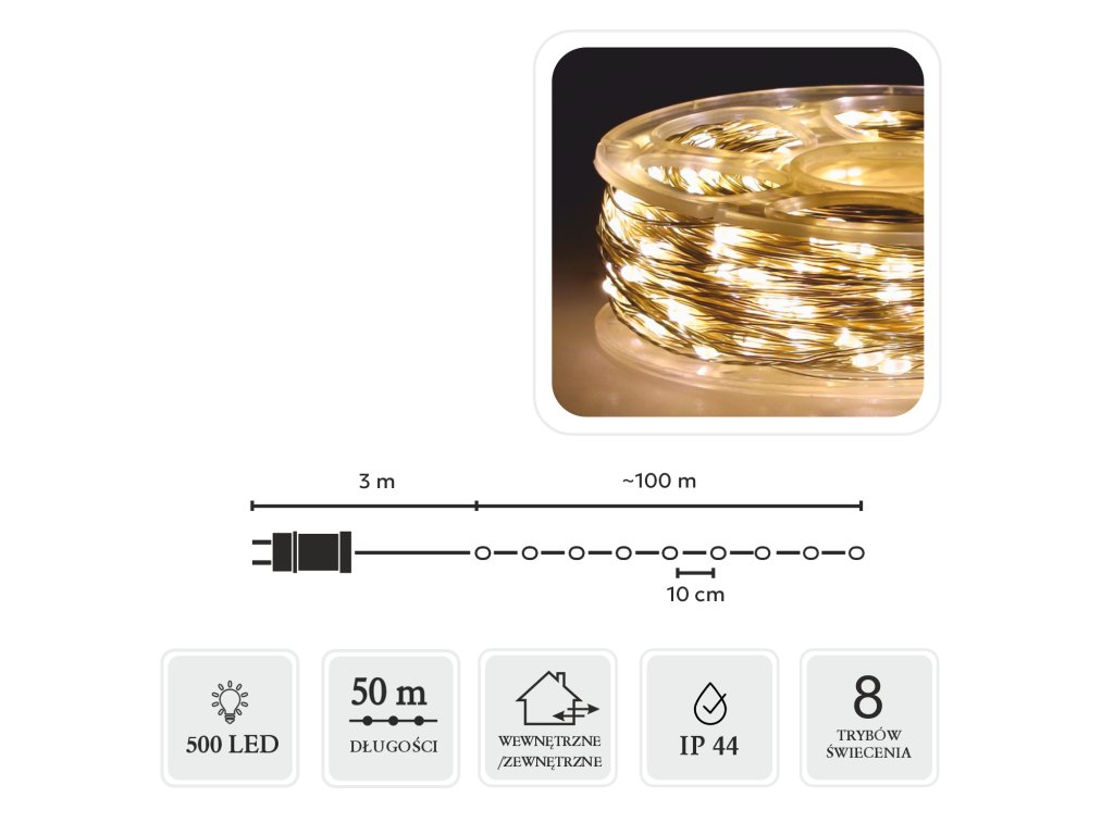 LED SVETIELKA DRÔTIKY NA CIEVKE 500L TEPLO BIELA, DĹ. 3 + 50 M *8523