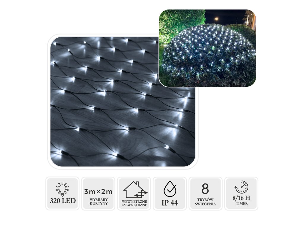 LED SVIETIACA SIEŤ 320L STUDENÁ BIELA 3 x 2 M VNÚTRI/VONKU *1711