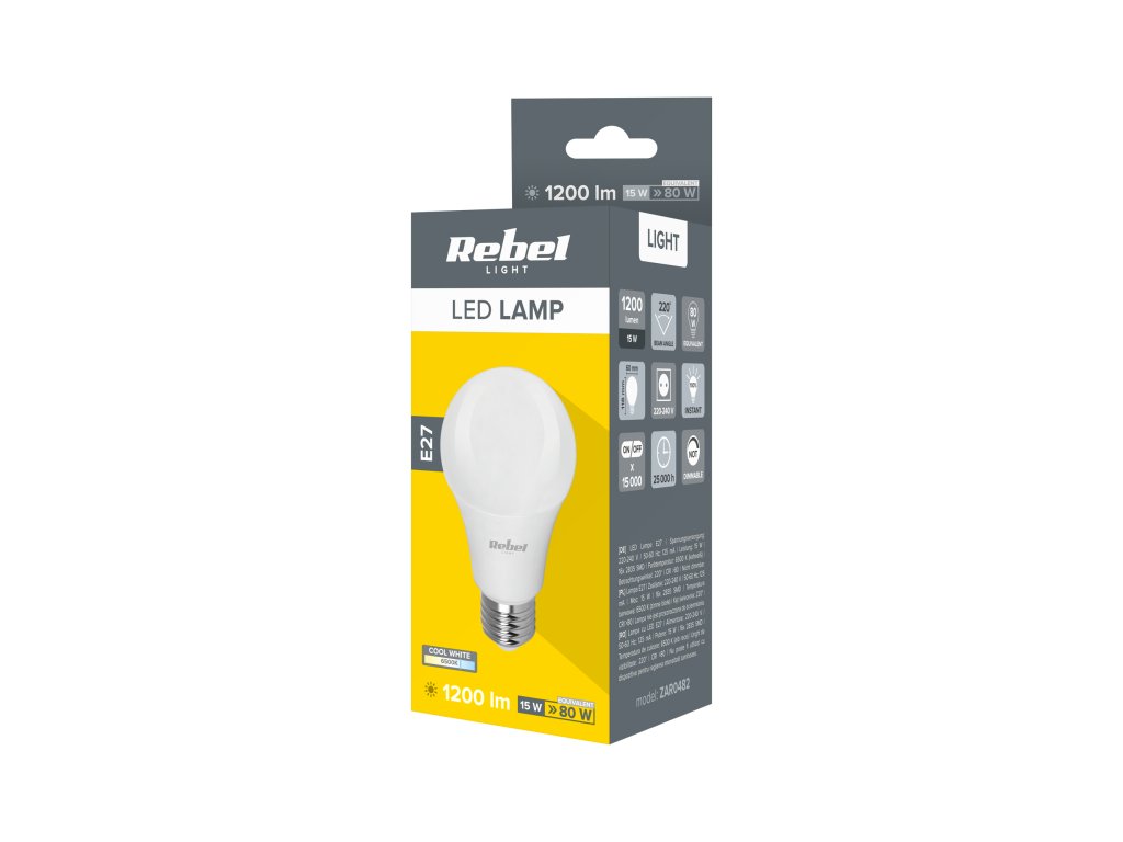 LED žiarovka E27, A60 15W 6500K 230V ZAR0482