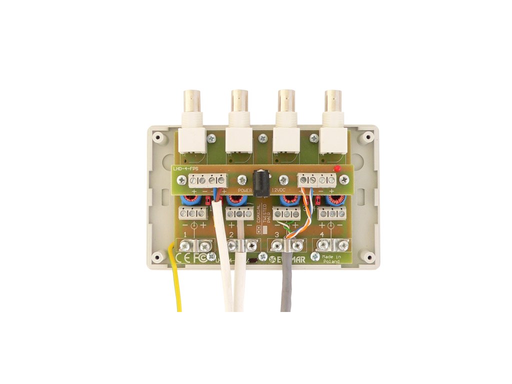 LHD-4-EXT-FPS DESKTOP - 4-kanálová prepäťová ochrana video trasy s transformátorom BNC-UTP a distribúciou napájania - EWIMAR