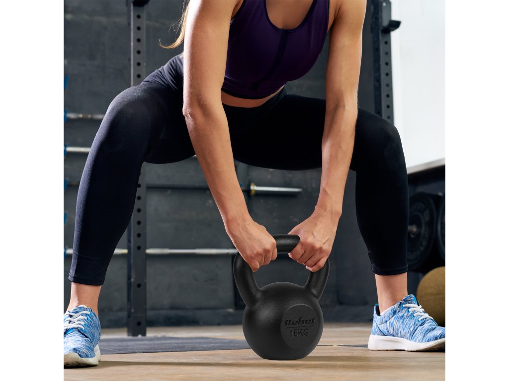 Liatinový kettlebell Rebel Active poskytuje neuveriteľnú rozmanitosť tréningu. Môžete cvičiť tradičné cviky ako drepy a mŕtve ťahy, ale s kettlebellom môžete tiež experimentovať s rôznymi pohybmi na posilnenie celého tela. Je to výborná pomôcka na precvičenie svalov paží, chrbta, brucha a hrudníka.