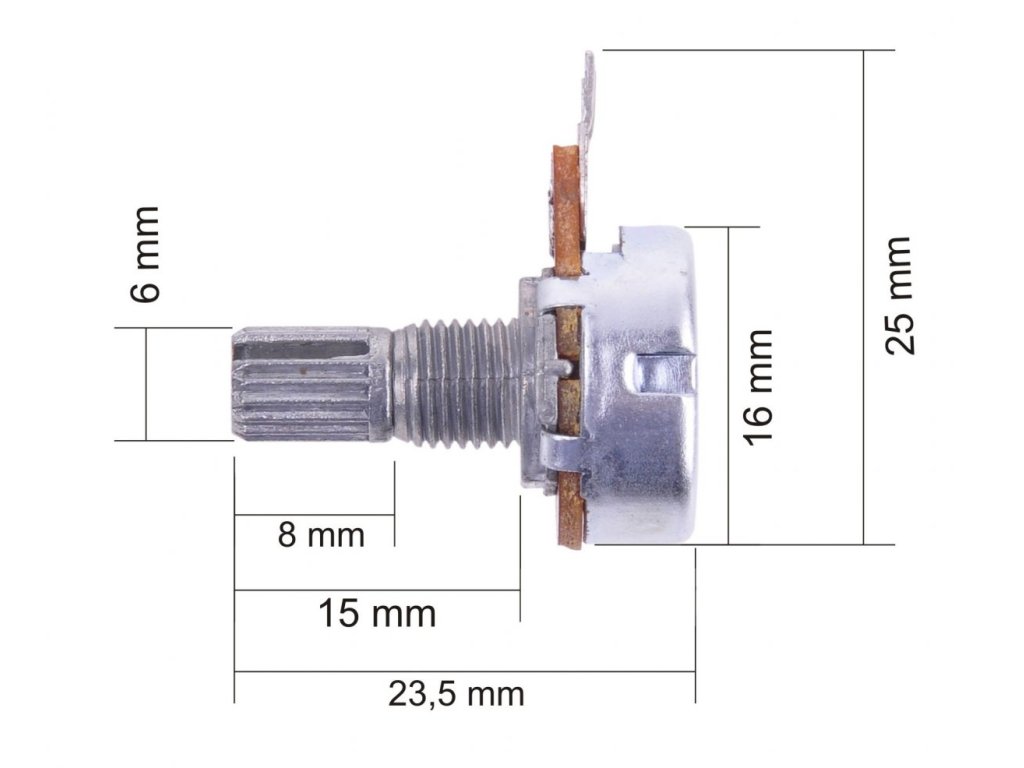 PRK0066 Potenciometer B 500K lineárny,priemer 16mm,hriadeľ 5x6mm,min.odber 10ks