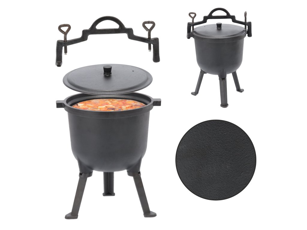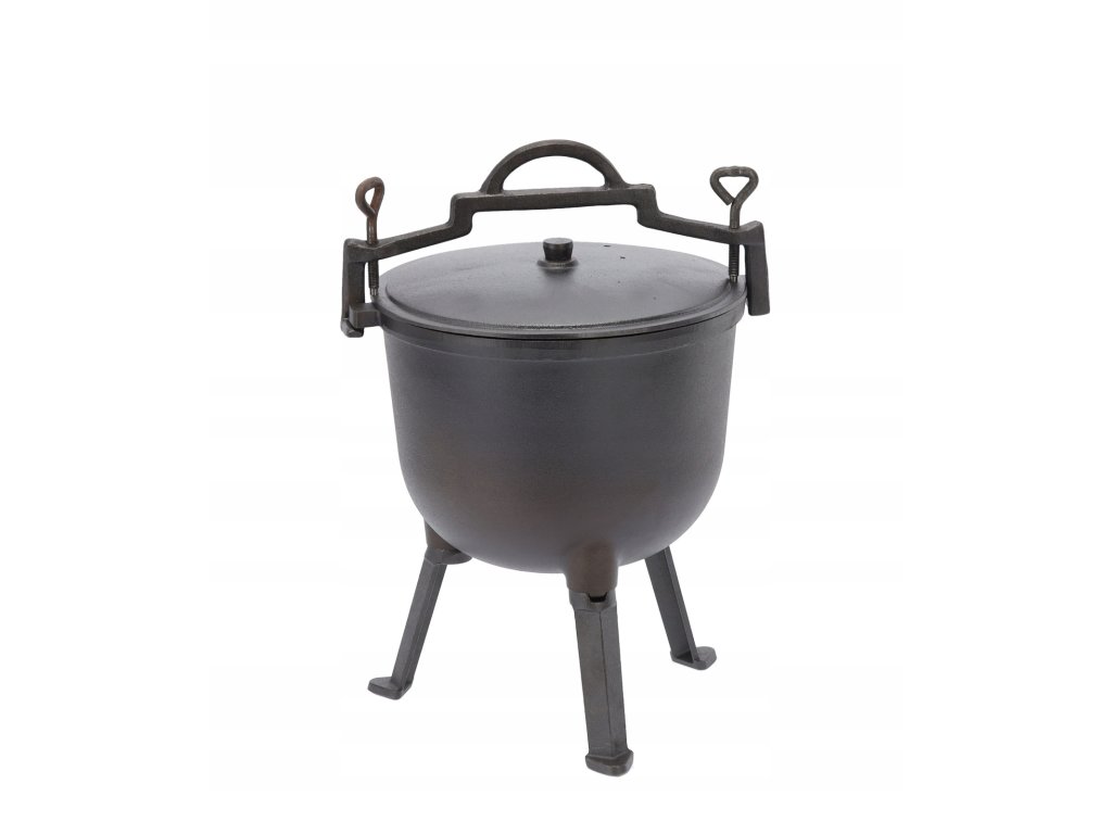 Poľovnícky liatinový kotlík je vynikajúcou voľbou na prípravu chutných jedál na čerstvom vzduchu. Jeho odolná konštrukcia umožňuje dlhodobé udržanie teploty, čo z neho robí ideálny doplnok na výlety, kempingy a iné aktivity v prírode.