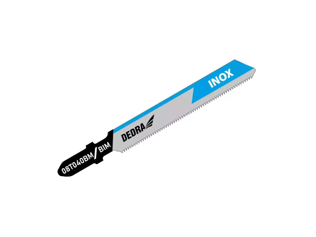 Pílový kotúč na rezanie nehrdzavejúcej ocele a ocele INOXDEDRA 08T 040 BM Čepeľ reže materiály z nehrdzavejúcej ocele/INOX s hrúbkou 0,5-1,5 mm. Čepeľ má maximálnu dĺžku 82 mm a pracovnú dĺžku 57 mm. Účinné rezanie zabezpečuje špeciálne pripravený rezný povrch,t. j. frézované vlnité zuby s 25TPI (25 zubov na palec) a materiál: BiMetal