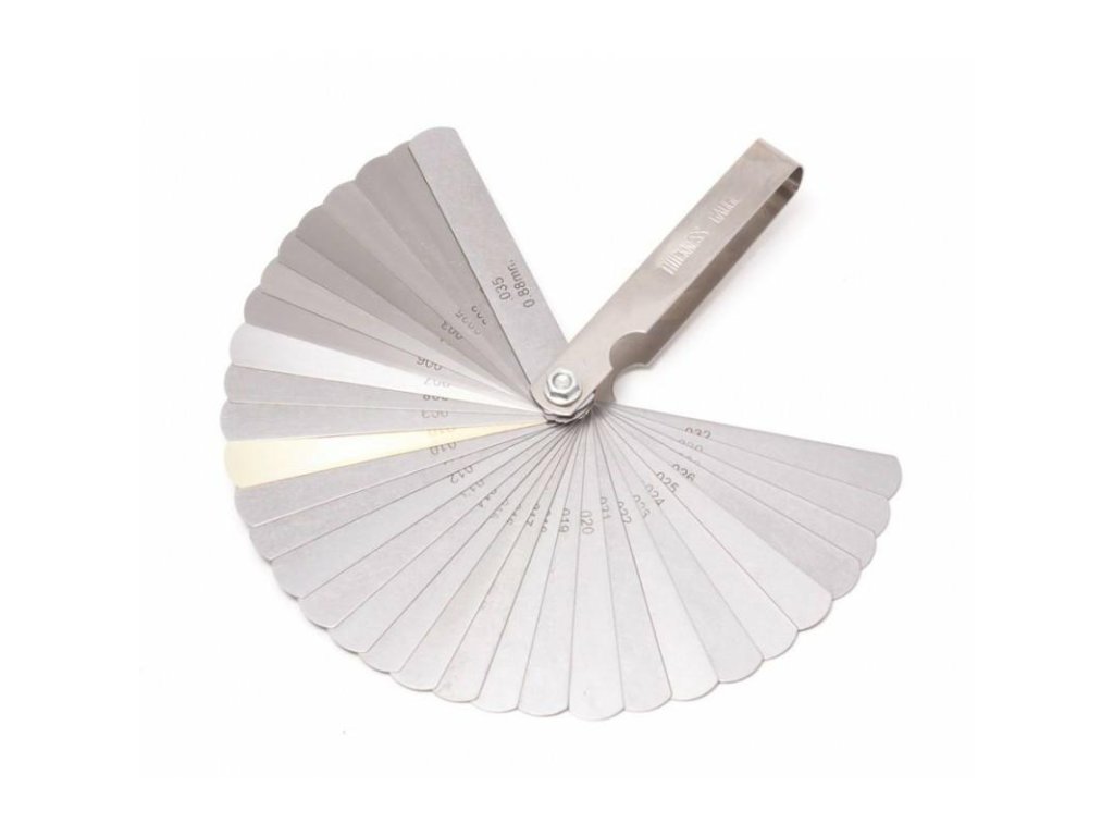 Listový medzera je určený na presné určenie veľkosti medzier alebo vôlí medzi susednými povrchmi. Nevyhnutný v každej dielni. Obsahuje 32 meracích listov rôznych hrúbok v puzdre určených na: