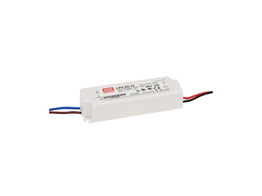 Napájacie zdroje sú nevyhnutné v inštaláciách LED osvetlenia. Spoločnosť Mean Well pripravila veľmi širokú škálu napájacích zdrojov najvyššej kvality, ktoré umožnia vhodné a viacročné napájanie LED osvetlenia, ktoré nainštalujeme v našom byte alebo firme. Profesionálny napájací zdroj LPV-20-12 je ideálny na napájanie LED produktov, ako sú napr.: pásiky, lampy alebo moduly. Vďaka tesnej konštrukcii (trieda tesnosti IP67) je možná montáž zariadenia na mieste vystavenom pôsobeniu vody, napr.: v kúpeľni.