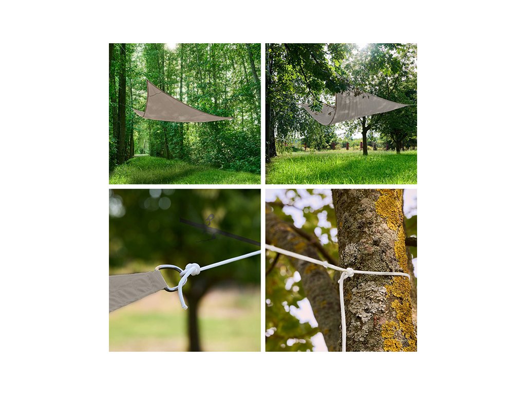Trojuholníková slnečná plachta ponúka široké možnosti usporiadania - dokonale sa hodí do rôznych priestorov: záhrady,terasy, balkóna alebo terasy. Tvar plachty a jej pohyblivosť umožňujú vytvoriť individuálne riešenia podľa vašich potrieb. Spevnené montážne hrany a robustné rohy plachty vybavené špeciálnymi úchytmi (D-krúžok) zabezpečujú odolnosť a stabilitu aj pri silnejšom vetre.