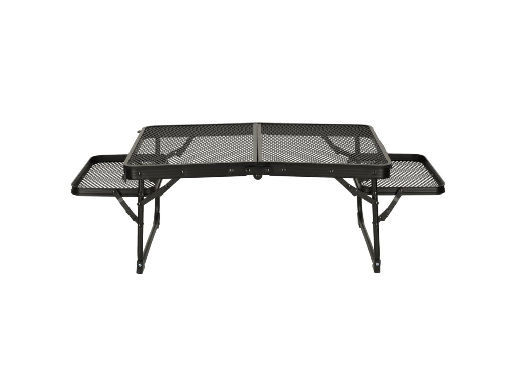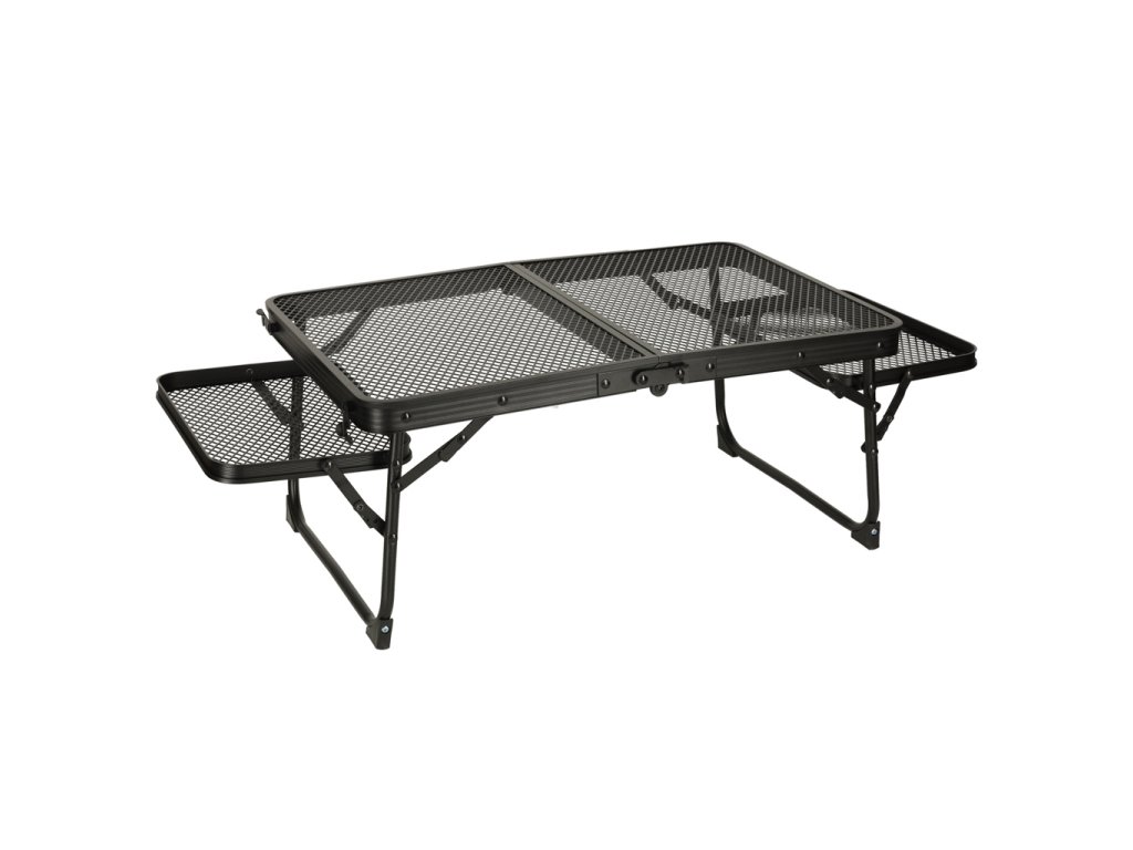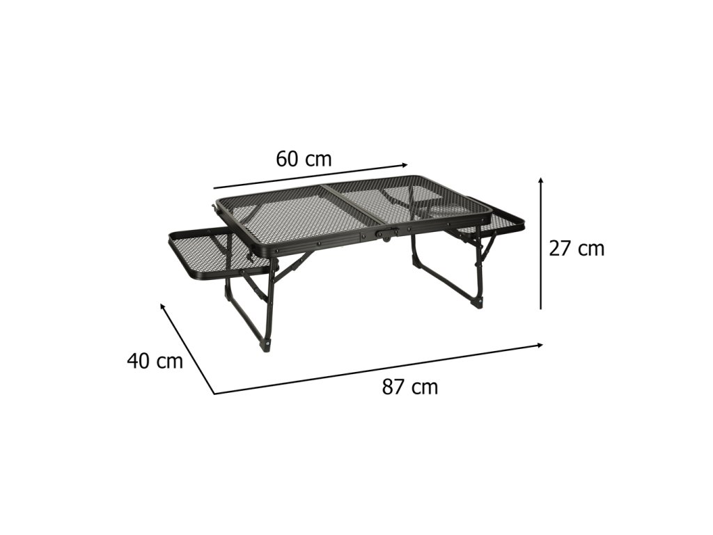 Vďaka hliníkovej konštrukcii poskytuje tento turistický stôl nízku hmotnosť a odolnosť proti korózii, zatiaľ čovrchná doska zo železnej sieťoviny dodáva pevnosť a priedušnosť. Je to model, ktorý sa skvele hodí do prírody - hliníkový turistický stôl zostáva odolný aj pri intenzívnom používaní a nepriaznivých poveternostných podmienkach. Jednoduché čistenie a rýchle sušenie sú ďalšie výhody, vďaka ktorým je vynikajúcou voľbou na pláž, na pozemok alebo na festival.