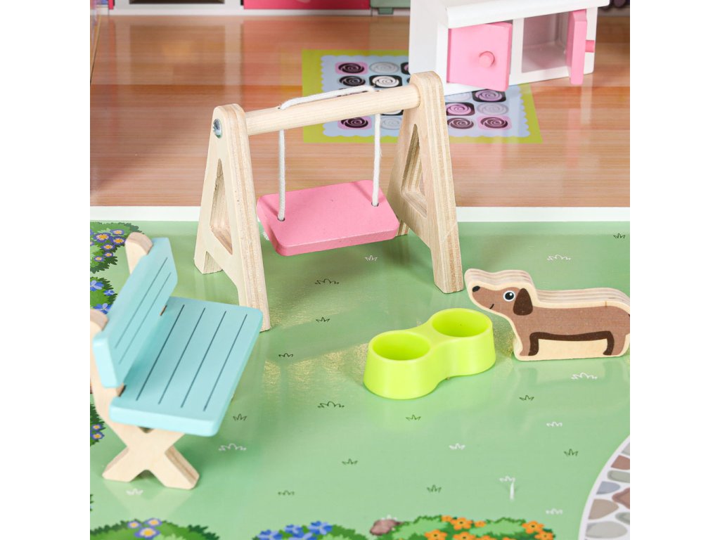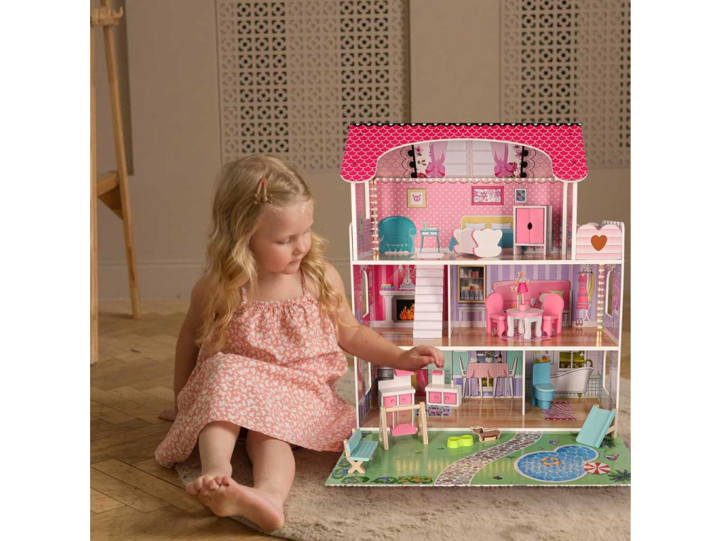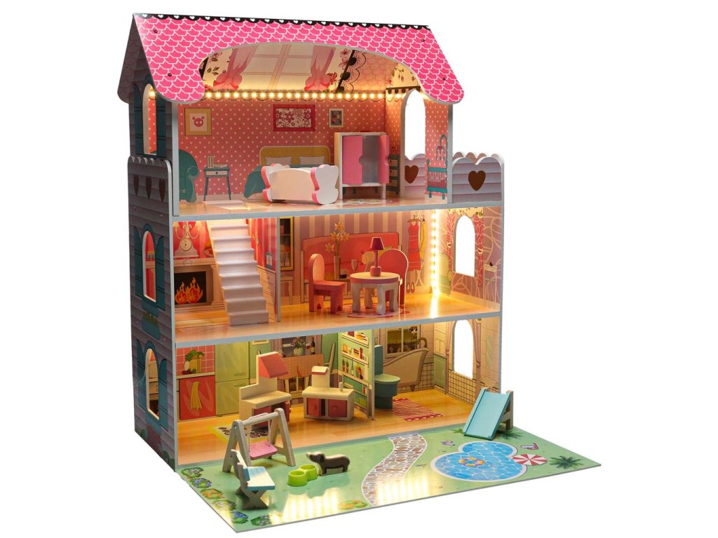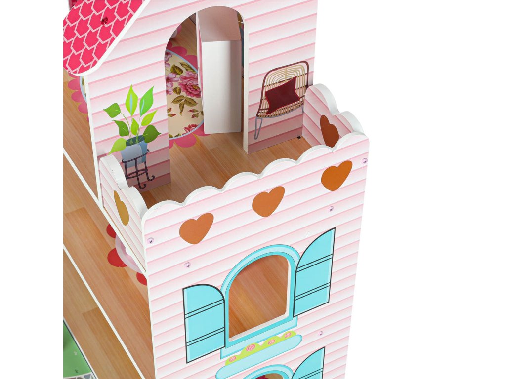 Lulilo Gardeno drevený domček pre bábiky so záhradným nábytkom 70 cm ružový LED
