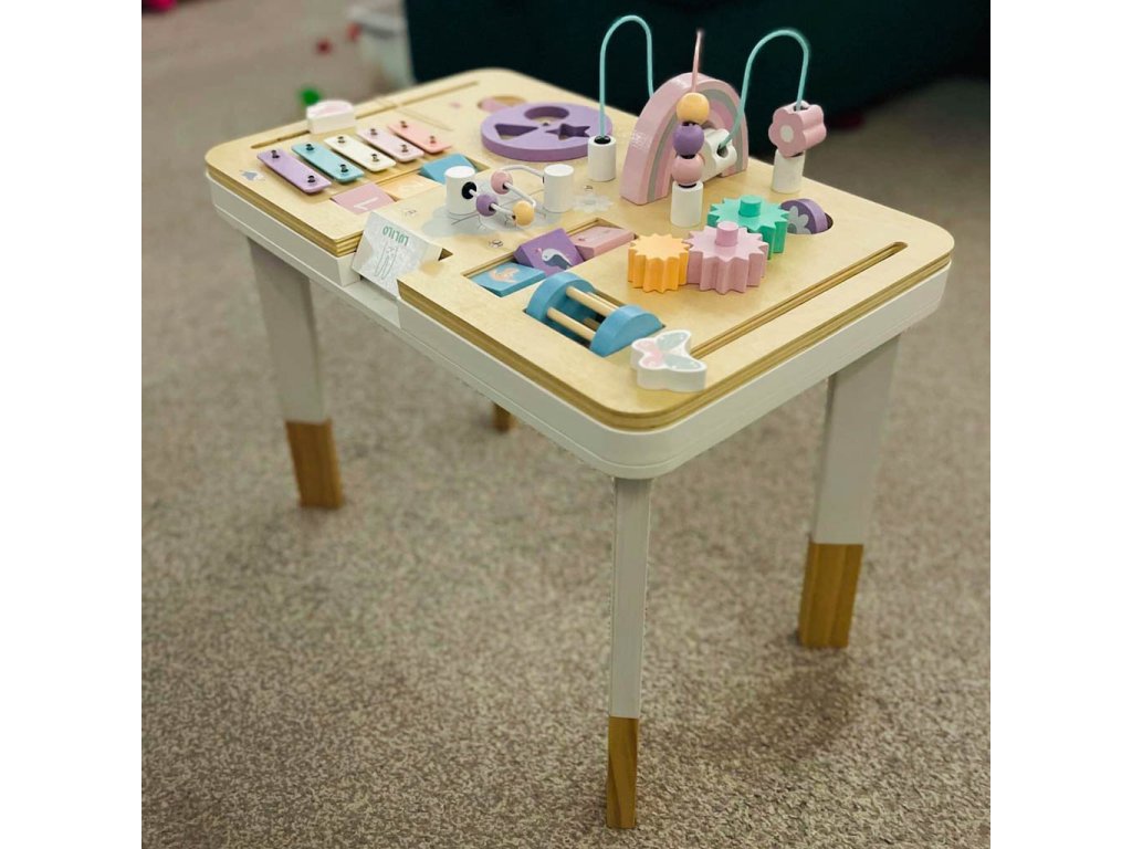 Bezpečnosť a kvalita konštrukcie - stôl je vyrobený z dreva so zaoblenými hranami, čo minimalizuje riziko poranenia počas hry