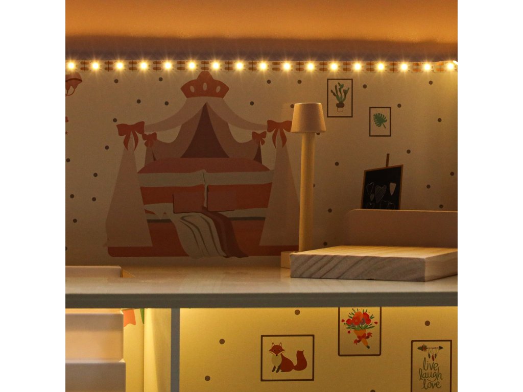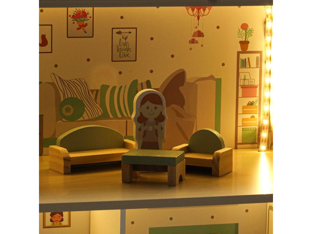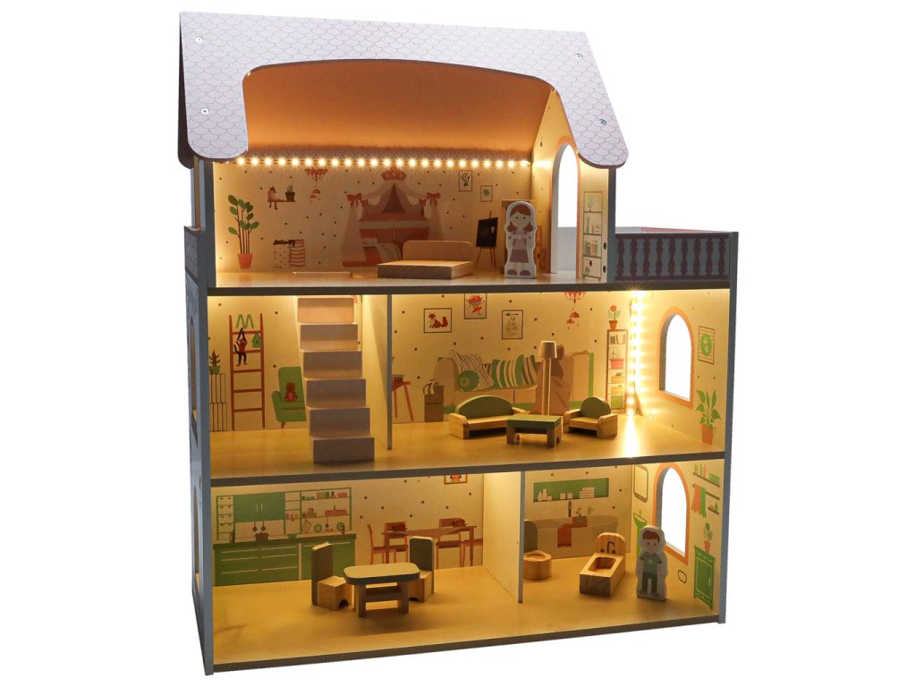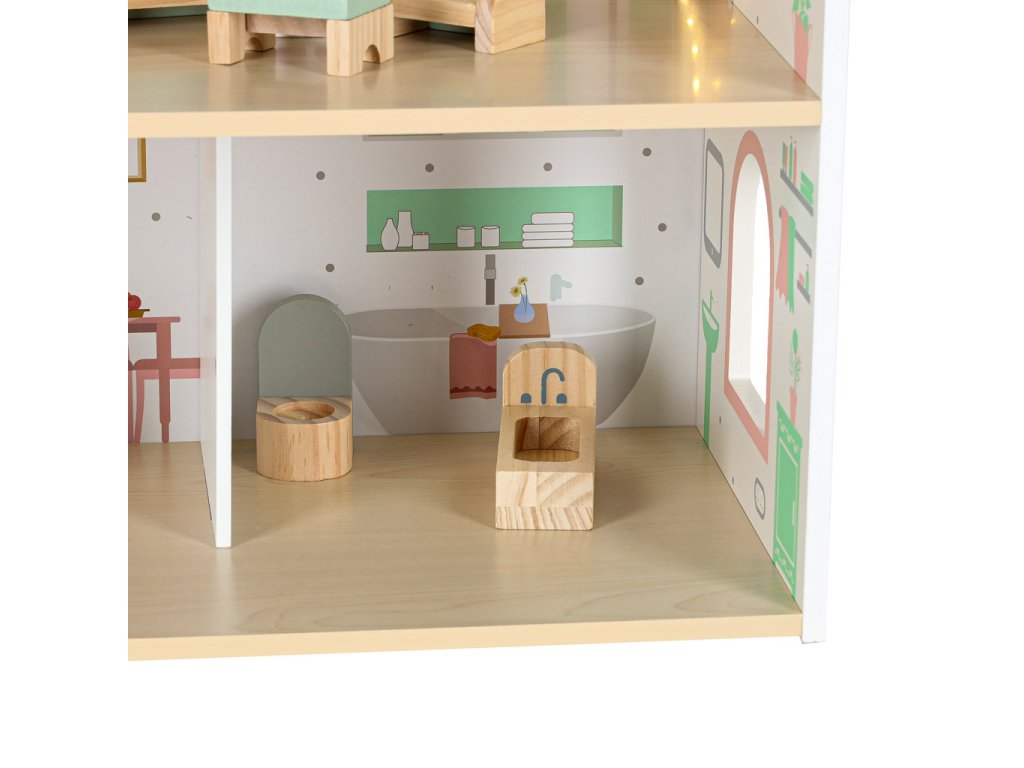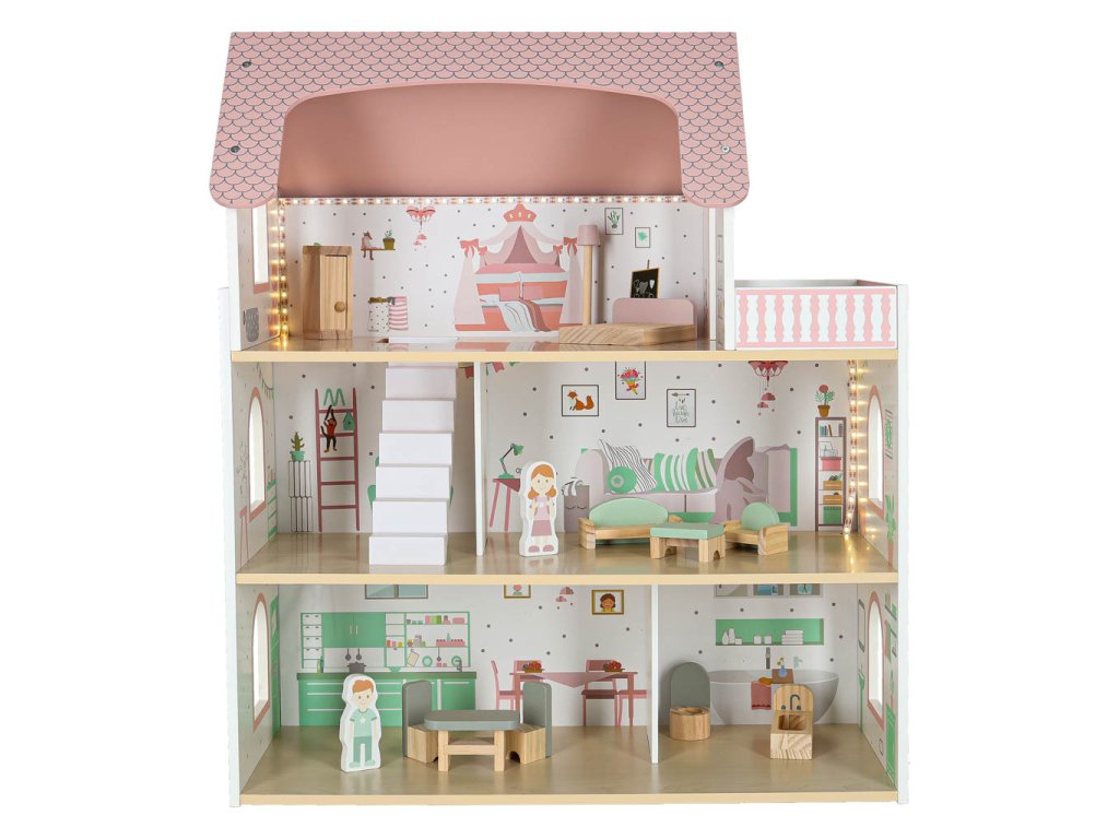 LULILO Peonio drevený domček pre bábiky 70cm LED ružový