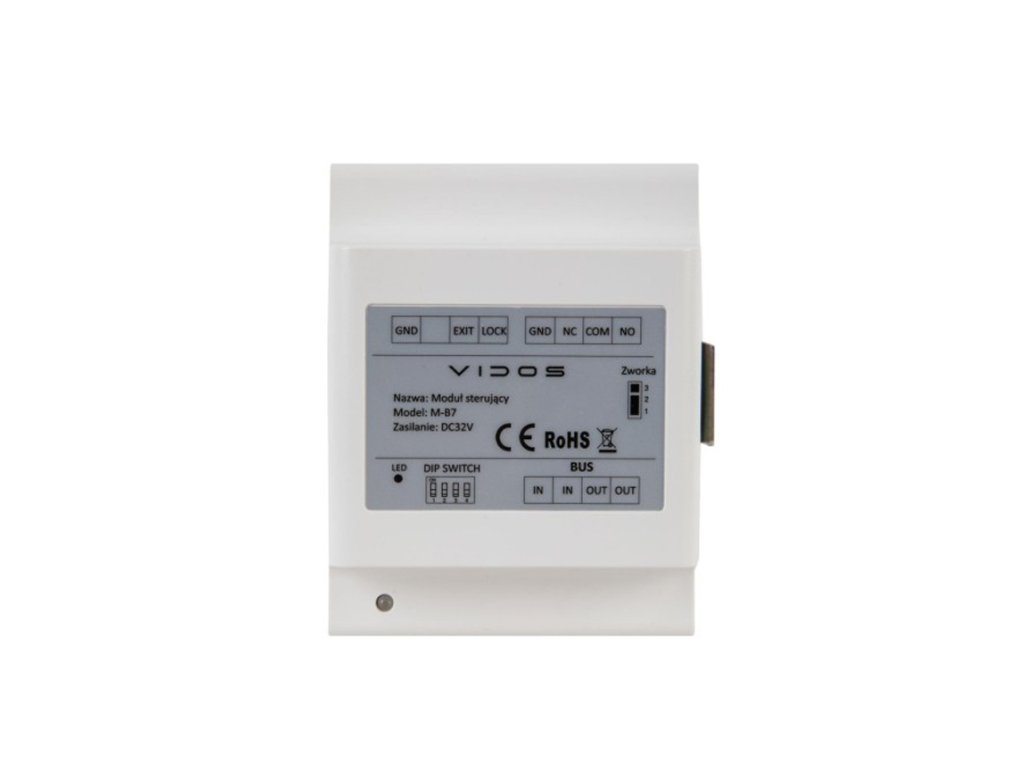 Modul M-B7 značky Vidos určený na prácu v 2-vodičovom digitálnom systéme série 2IP. Umožňuje obsluhu druhého elektronického vrátníka alebo automatickej brány. Rovnako umožňuje ovládanie osvetlenia a otváranie vchodu pomocou dodatočného tlačidla.
