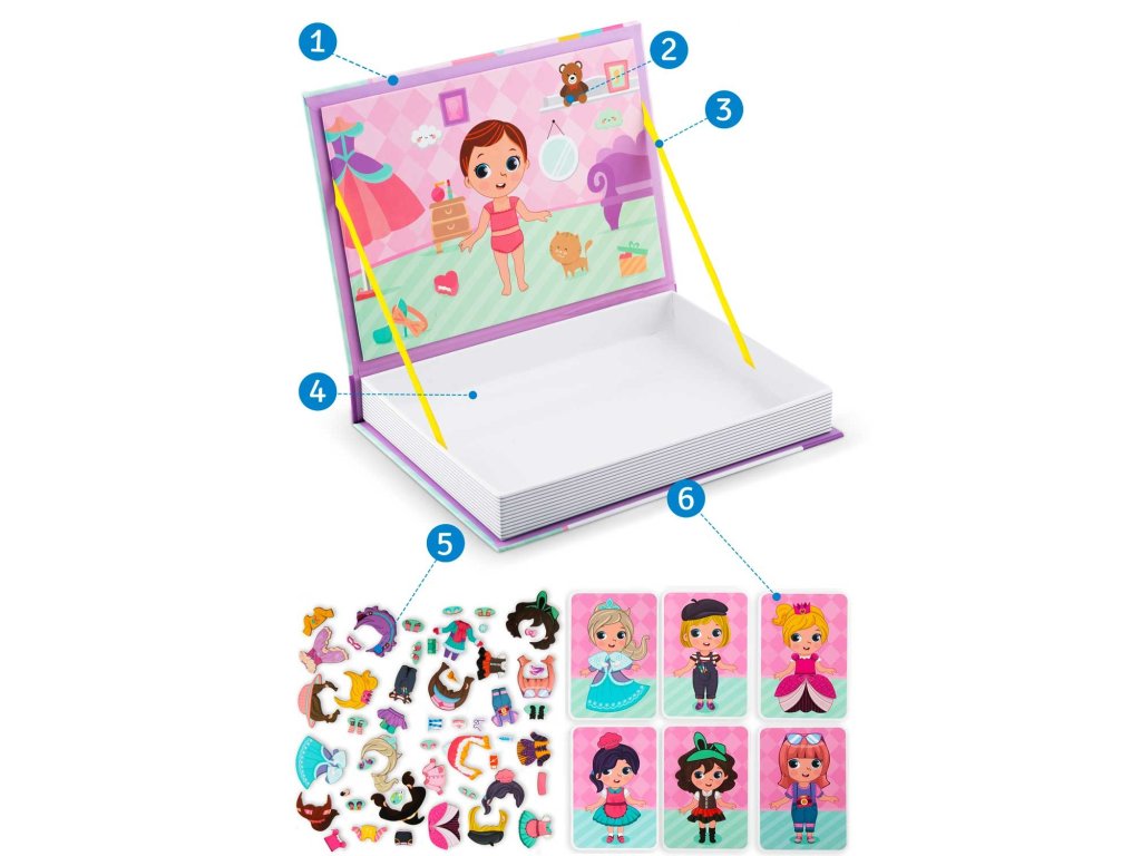 - balenie obsahuje magnetické pozadie na nalepenie predmetov dievčenského šatníka, slúži aj ako odkladacia priehradka.
