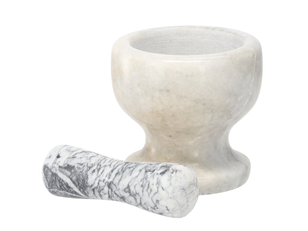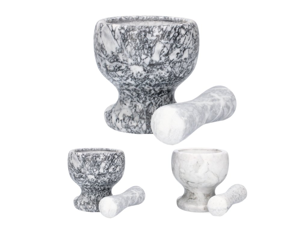 Vysoko kvalitný mramorový mažiar v bielej farbe. Ideálne sa hodí na ručné drvenie bylín, korenín a iných tvrdých produktov. Rozmer: 12,5x12,5 cm.Dodatočné parametre